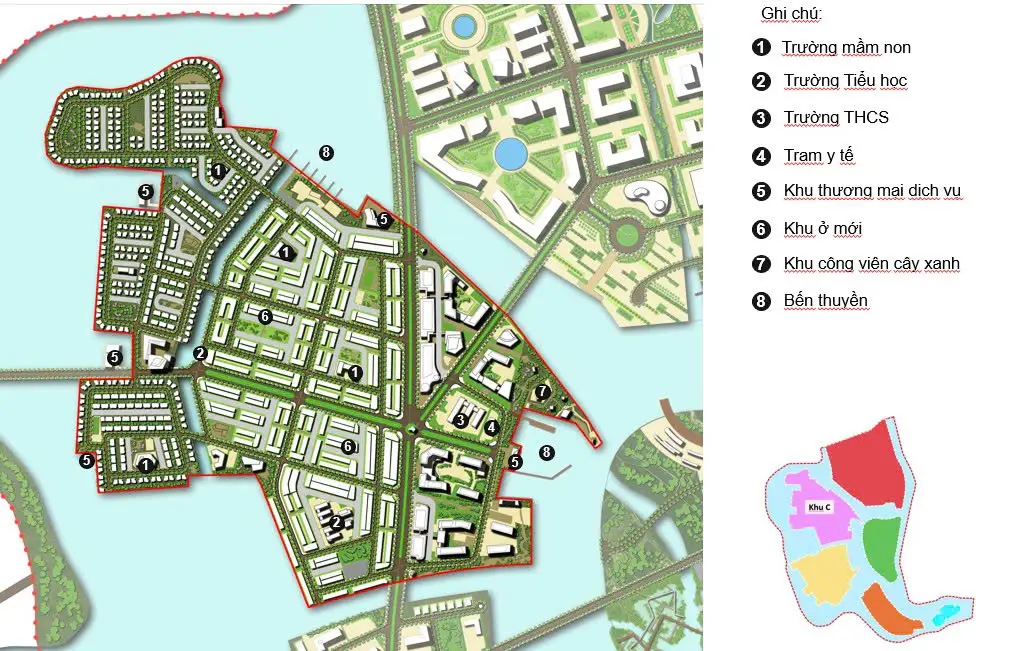 Hồ cảnh quan 7ha, công viên chợ nổi, phố kinh tế đêm, trường học liên cấp và công viên đa thế hệ tạo nên không gian sống.